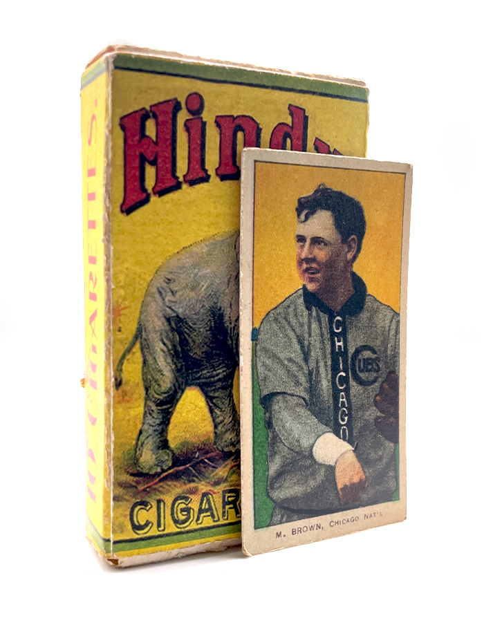 Built in the classic sliding-tray style and aged entirely by hand, this pack looks and feels like it came straight from a corner shop tucked along a dusty southern rail line. With its deep red Hindu branding and period-true typography, it echoes the era when M. Brown earned his reputation for sharp command and gutsy outings on the mound.
